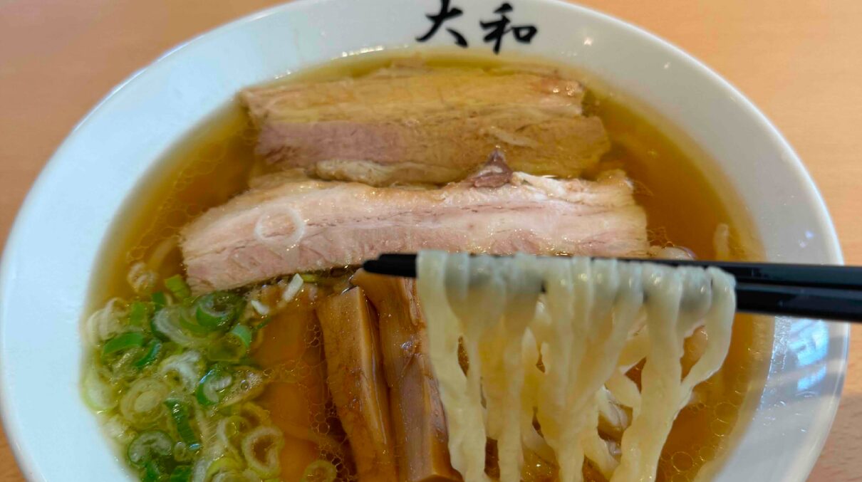 佐野ラーメン(青竹手打ちラーメン 大和)は、青竹を使って手打ちされたもちもちの麺が特徴の一杯です。あっさりとした醤油スープとの相性が抜群で、食べるたびに優しい味わいが広がります。店内は落ち着いた雰囲気で、地元民から観光客まで幅広く支持されています。佐野ラーメンの魅力を存分に堪能できる名店です。