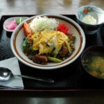 スタミナホルモン定食(峰食堂)は、新鮮なホルモンを特製ダレで炒めたスタミナ満点の定食です。香ばしい香りと食感が楽しめ、ご飯が進む一品として評判です。地元の常連客が多く訪れる食堂で、心温まる家庭的な味を提供しています。